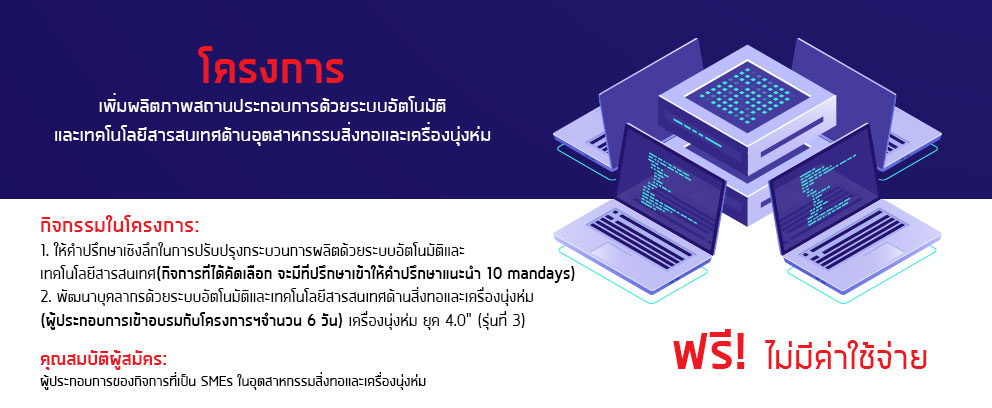 โครงการ เพิ่มผลิตภาพสถานประกอบการด้วยระบบอัตโนมัติและเทคโนโลยีสารสนเทศ ด้านอุตสาหกรรมสิ่งทอและเครื่องนุ่งห่ม