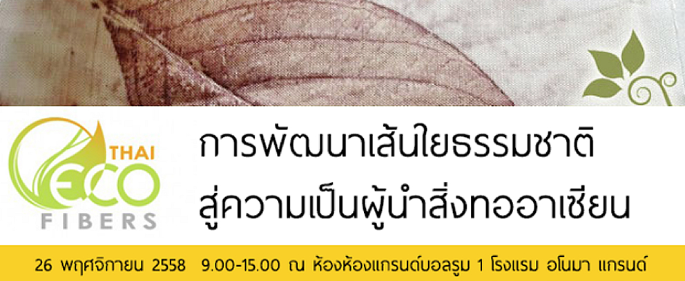วัตถุประสงค์ของการสัมมนา: เพื่อให้ผู้ประกอบการมีแนวทางนำเส้นใยธรรมชาติมาใช้ในการทำธุรกิจ และรับสมัครผู้ประกอบการเข้าร่วมโครงการ