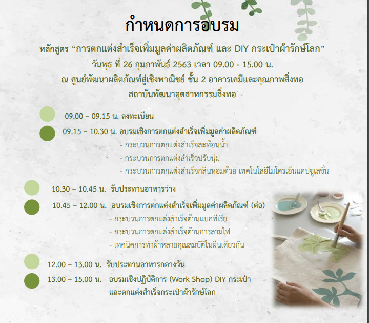 @ ชั้น 2 ศูนย์พัฒนาผลิตภัณฑ์สู่เชิงพาณิชย์ อาคารเคมีและคุณภาพ สถาบันพัฒนาอุตสาหกรรมสิ่งทอ