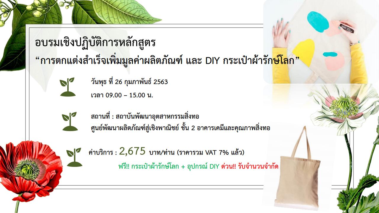 กับกิจกรรม " DIY การตกแต่งสำเร็จสร้างมูลค่าเพิ่มให้ผลิตภัณฑ์ กระเป๋าผ้ารักษ์โลก "