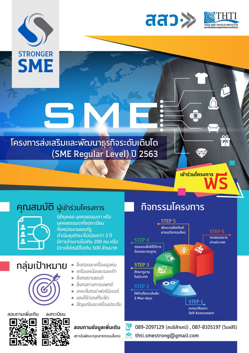 ขอเชิญสมัครเข้าร่วมโครงการส่งเสริมและพัฒนาธุรกิจระดับเติบโต (SME Regular Level) ปี 2563