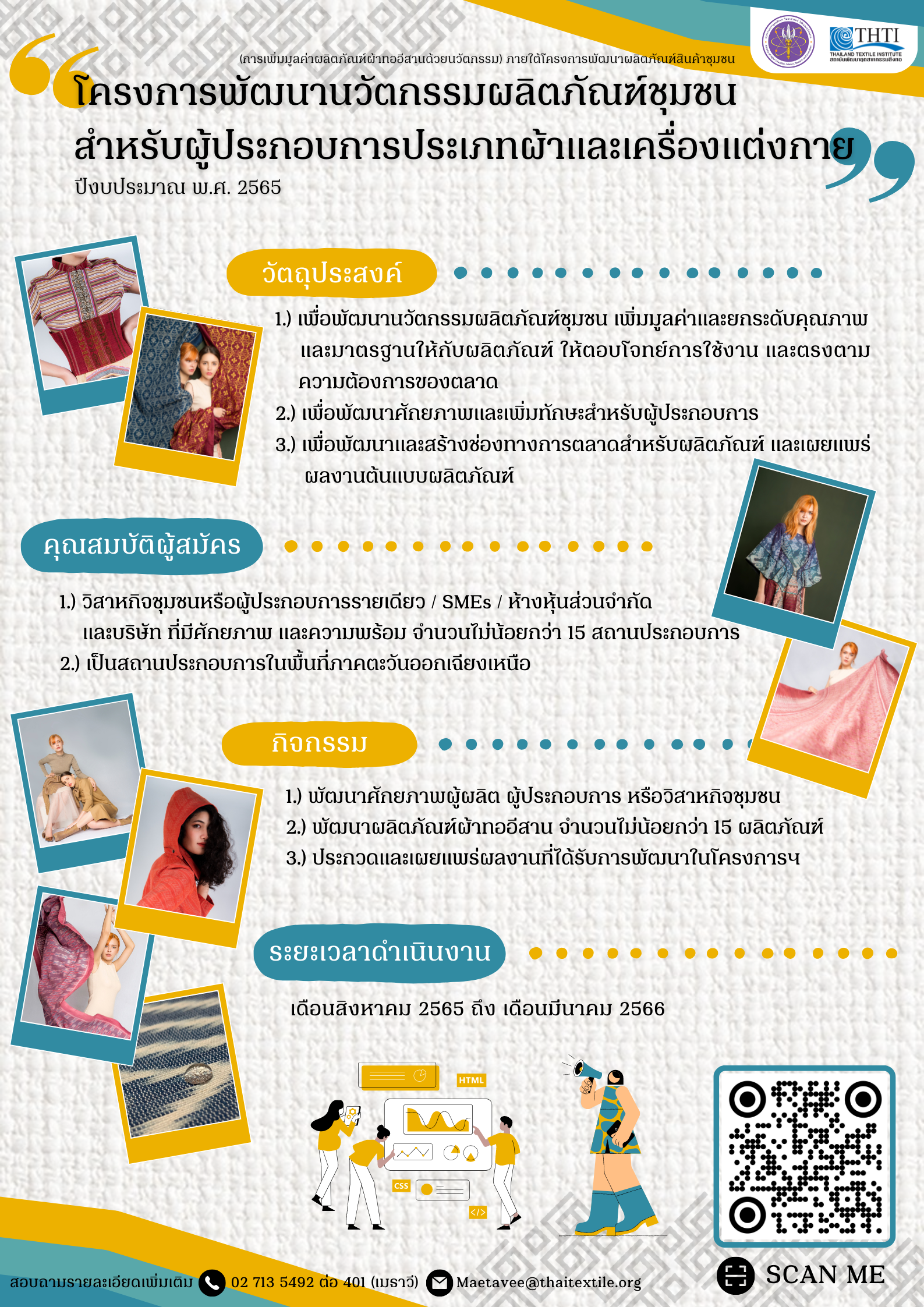 โครงการพัฒนานวัตกรรมผลิตภัณฑ์ชุมชนสำหรับผู้ประกอบการประเภทผ้าและเครื่องแต่งกาย