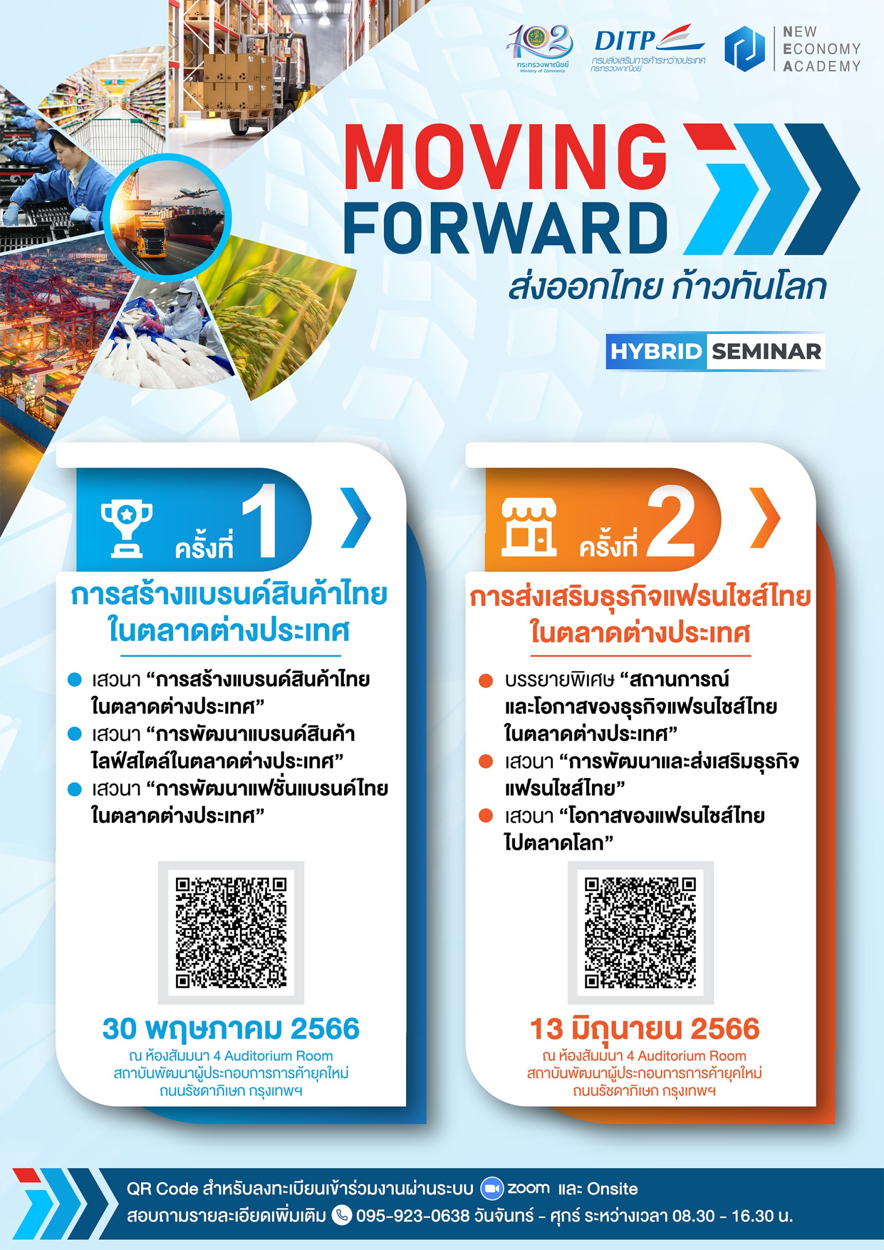 พาณิชย์–DITP เปิดเวที Moving Forward : ส่งออกไทย ก้าวทันโลก ติดอาวุธผู้ประกอบการลุยสร้างแบรนด์สินค้าไทยในตลาดต่างประเทศ