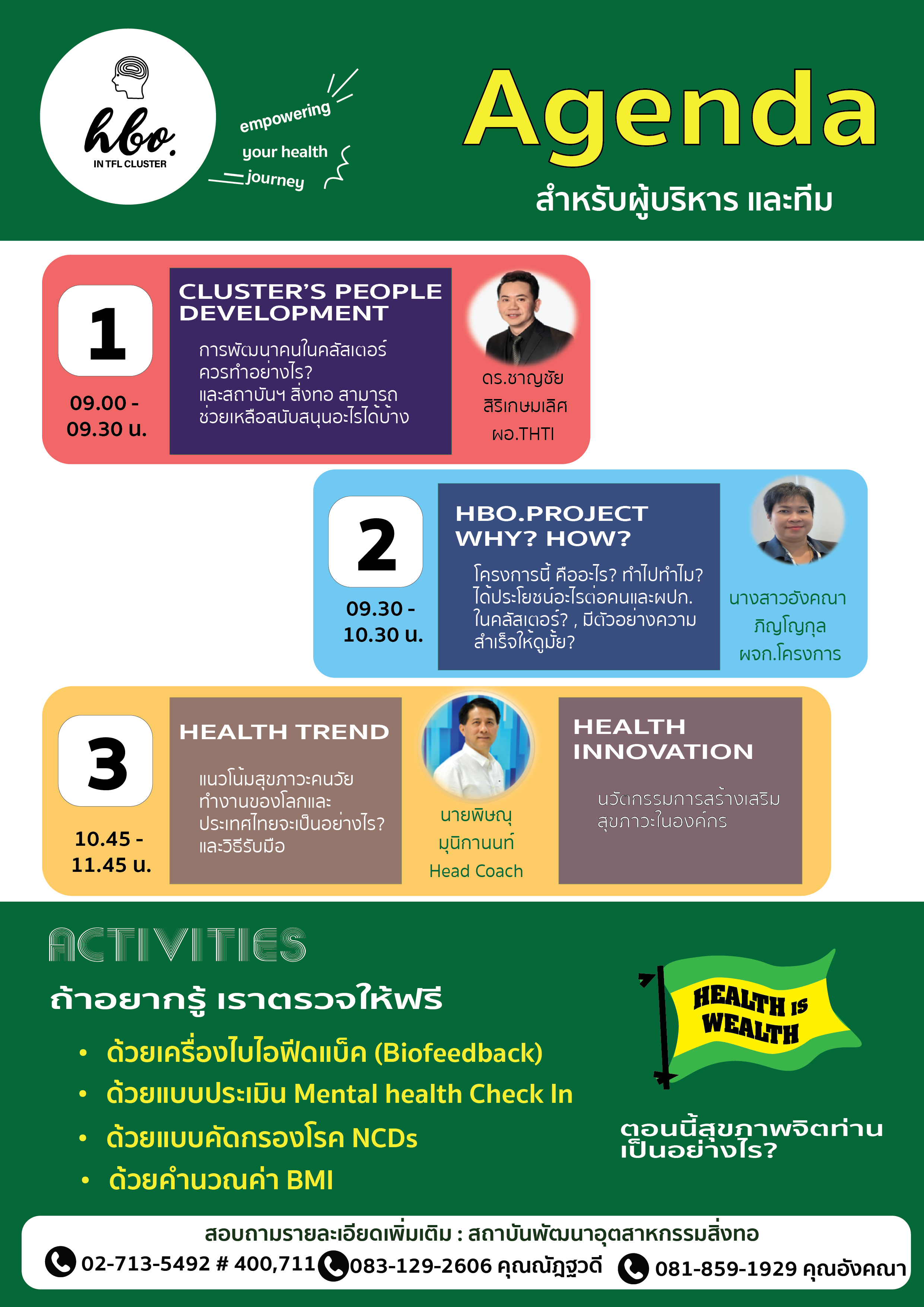 สสส.ร่วมกับ สถาบันสิ่งทอฯ ขอเชิญ สถานประกอบการ ร่วมพัฒนา สร้าง องค์กรสุขภาวะเน้นผลลัพธ์เชิงพฤติกรรมสุขภาพ สมัครเข้าร่วมโครงการ สร้าง และยกระดับองค์กรสุขภาวะเน้นผลลัพธ์เชิงพฤติกรรมสุขภาพ (Implement HBO)รับสมัคร ตั้งแต่วันนี้ – 31 ตุลาคม 2567