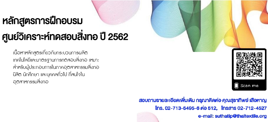 หลักสูตรการฝึกอบรม ศูนย์วิเคราะห์ทดสอบสิ่งทอ ปี 2562