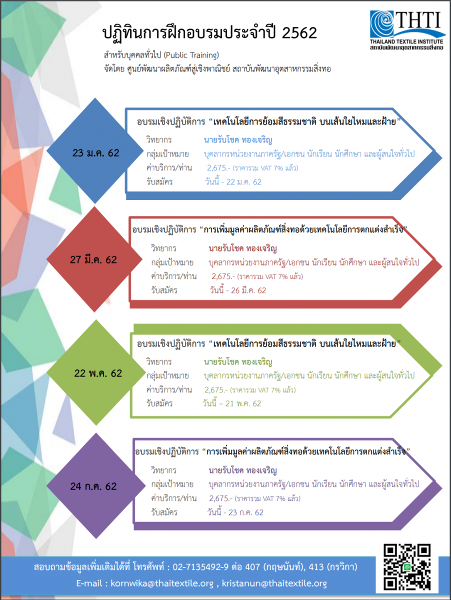 ปฏิทินการฝึกอบรมประจำปี ศูนย์พัฒนำผลิตภัณฑ์สู่เชิงพำณิชย์ 2562
